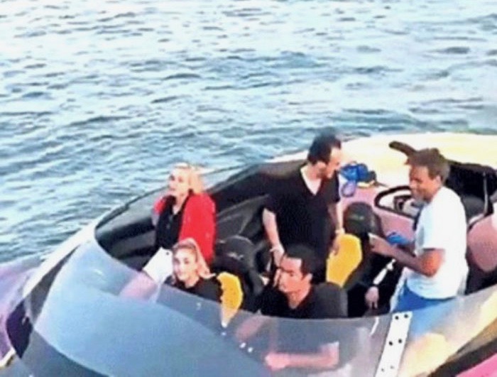 Ardından Çeşme'de de objektiflere yakalandılar. Hem tekneye binerken, hem de teknenin içinde, denize açılırken…