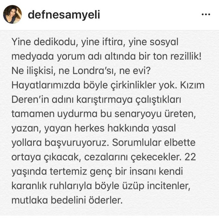 İşte Defne Samyeli'nin o paylaşımı:
