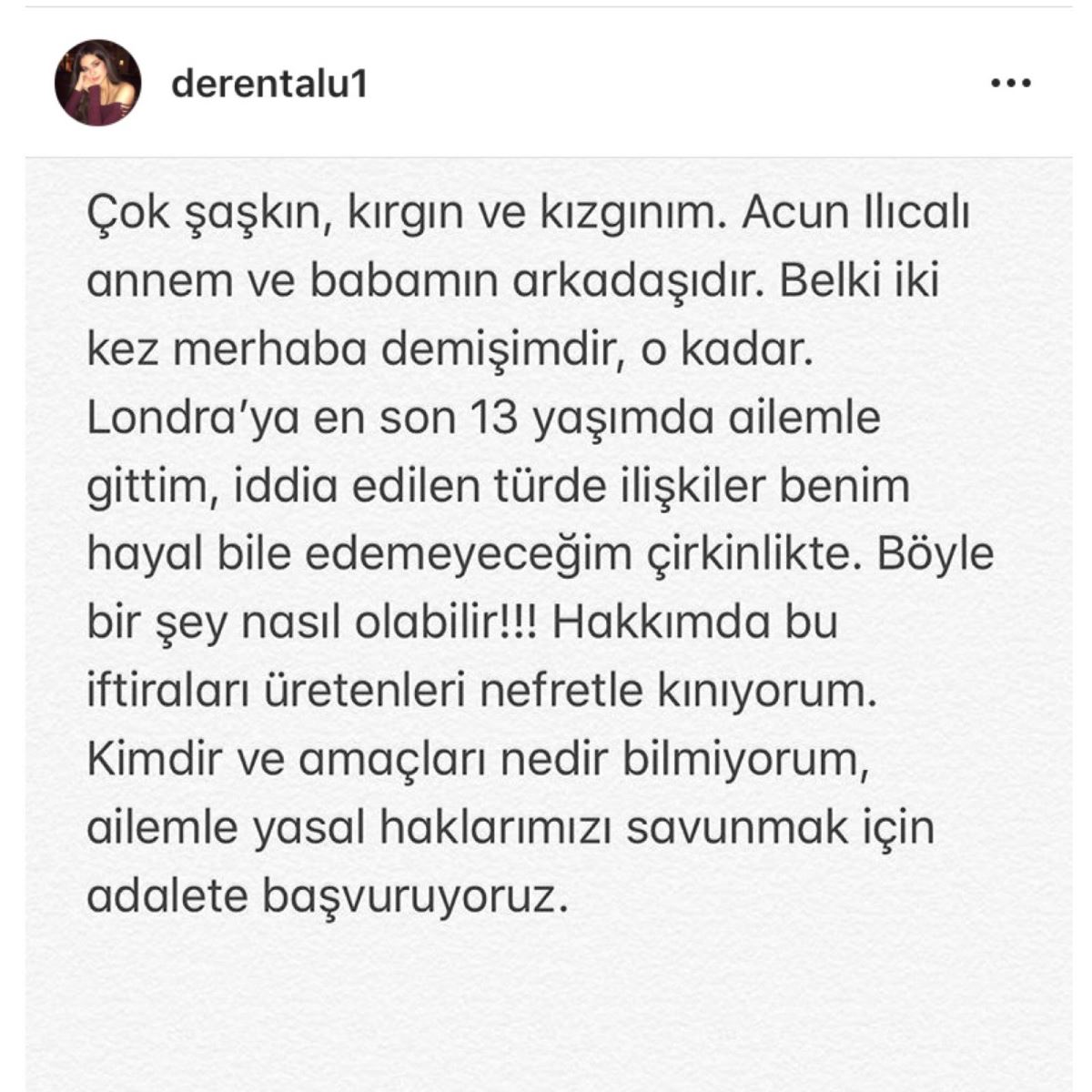 İsmi geçen Deren Talu ise sosyal medya bir açıklama yaparak bunu yalanladı...