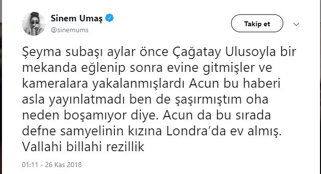 İşte Sinem Umaş'ın o paylaşımı;