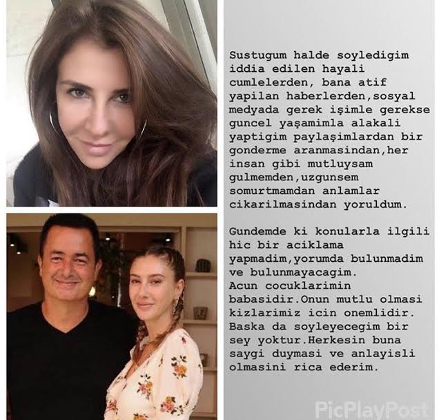 Acun Ilıcalı'nın Şeyma Subaşı için boşandığı eski eşi Zeynep Yılmaz sessizliğini bozdu. Yılmaz, Acun ve Şeyma'nın boşanmasıyla alakalı yakın çevresine "Yuva yıkanın yuvası olmaz" dediği iddiasına sosyal medya hesabından bir açıklama yaptı!..