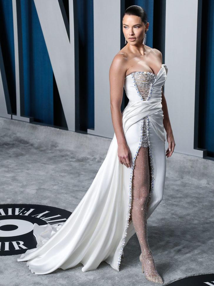Bu eleştirilerden nasibini alanlardan biri Adriana Lima oldu. 38 yaşındaki iki çocuk annesi Lima, parti için beyaz, ilk bakışta sade fakat tepeden tırnağa kristallerle süslenen bir kıyafet giydi.