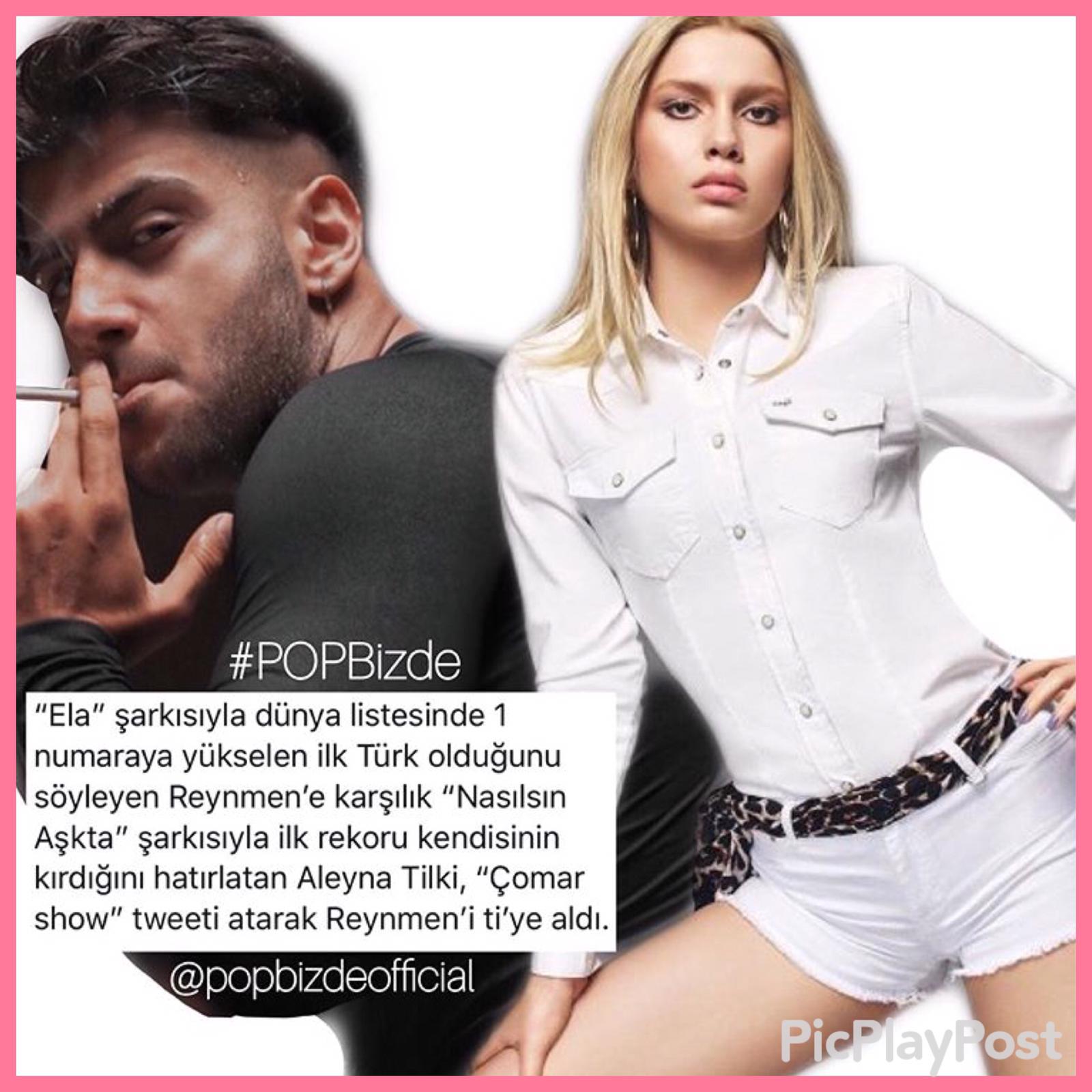 “Ela” şarkısıyla dünya listesinde 1 numaraya yükselen ilk Türk olduğunu söyleyen Reynmen’e karşılık “Nasılsın Aşkta” şarkısıyla ilk rekoru kendisinin kırdığını hatırlatan Aleyna Tilki, “Çomar show” tweeti atarak Reynmen’i ti’ye aldı.