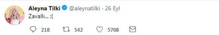 Aleyna Tilki'den bugün bir atak geldi. Aleyna Tilki, Twitter hesabından 'zavallı' diye bir tweet attı. Takipçileri ise bu tweet'in Dilan Çıtak Tatlıses'e olduğunu iddia etti.