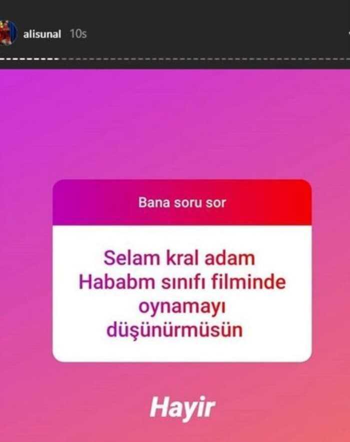Sunal ayrıca kendisine gelen 'Hababam Sınıfı filminde oynamak ister misin?' sorusuna da 'Hayır' cevabını verdi.
