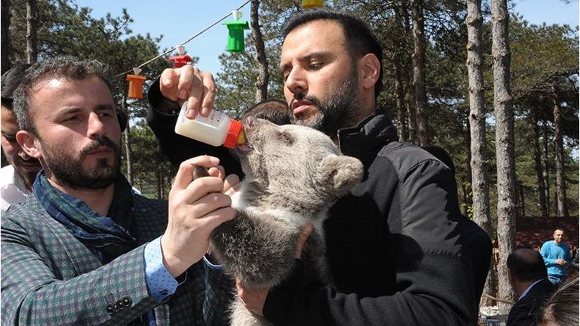 Alişan yavru ayıyı elleriyle besledi