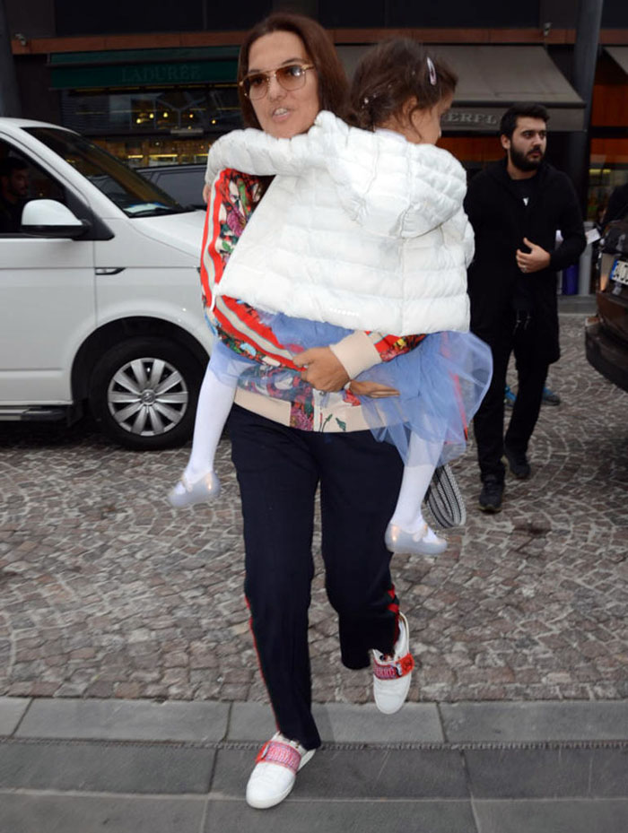 Kızıyla mağazaları dolaşan şarkıcı, muhabirlere “Hira yanımda, sonra konuşuruz” dedikten sonra aracına binerek uzaklaştı.