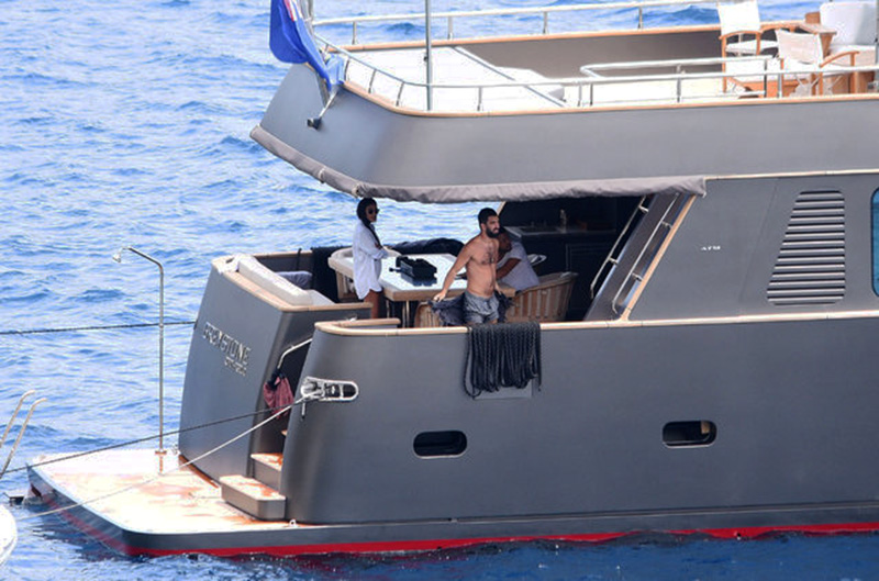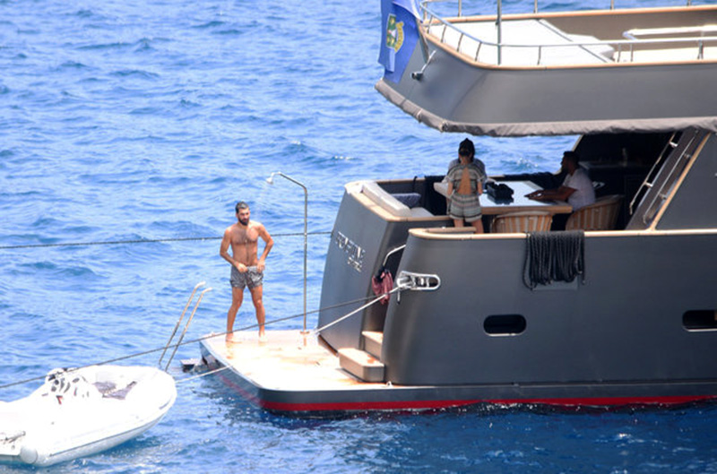 Kiraladıkları süper lüks tekneyi Göbün Koyu’na demirleyen ikiliye ünlü futbolcunun kardeşi Okan Turan da eşlik etti.