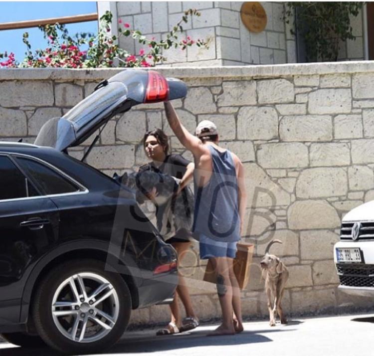 Görüntülendiğini fark eden ikili kısa süreli şaşkınlık yaşadı. Valizlerini ve köpeklerini araçlarına koyan ikili, daha fazla görüntü vermemek adına ayrıldıkları otele geri girmek zorunda kaldı. (SnobMagazin)