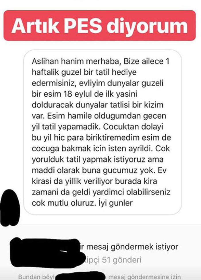 Eşim hamile olduğundan geçen yıl tatil yapamadık çocuktan dolayı bu yıl için para biriktiremedim eşim de çocuğa bakmak için işten ayrıldı çok yorulduk tatil yapmak istiyoruz ama maddi olarak buna gücümüz yok ev kirası yıllık veriliyor burada. Kira zamanı geldi yardımcı olabilirseniz çok mutlu oluruz iyi günler" şeklinde mesajını görünce çıldırdı.