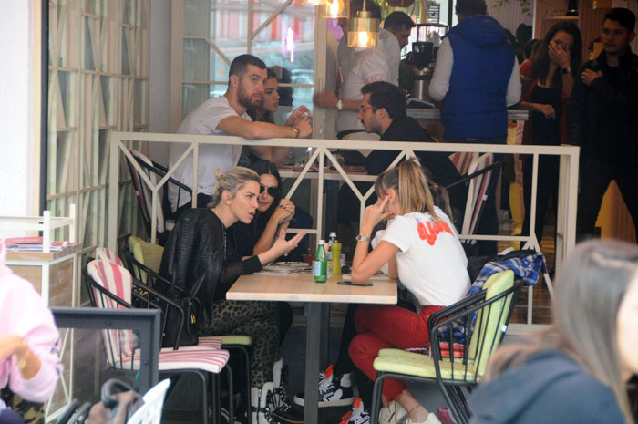 Hararetli sohbete yan masalarındaki Oğulcan Engin’in de eşlik ettiği dikkatlerden kaçmadı. Oldukça neşeli olduğu gözlenen grup sohbetin ardından evlerinin yolunu tuttu.
