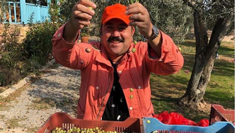 Ata Demirer kendi yetiştirdiği zeytinlerle poz verdi