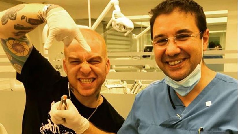 42 yaşındaki Gökhan Özoğuz, dört dişini birden çektirdi. Diş çekimi sonrası hayli keyifliydi.