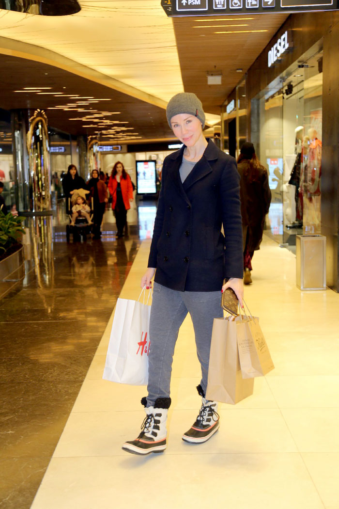 Kızı İrem Kutluay, ile birlikte geldiği AVM'de alışverişe çıkan anne kız, daha sonra bir mekanda öğle yemeği yiyip AVM'den ayrıldı.