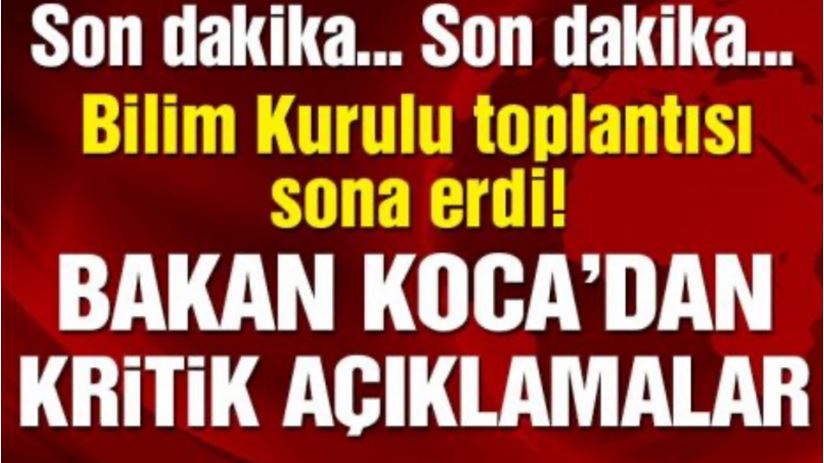 Türkiye'de tüm gözlerin çevrildiği Bilim Kurulu toplantısı sona erdi. Sağlık Bakanı Fahrettin Koca açıklamalarda bulunuyor. Vefat sayısının yüksek olduğu ili açıklayan Koca, "Son günlerde dalgalanmaların seyri farklı illerimizde farklı olmaktadır.