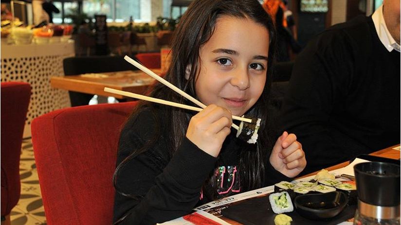 Japon mutfağının vazgeçilmez yemeklerinden biri olan sushi’yi tercih etmesi görenleri hayrete düşürdü. ilk defa sushi yiyeceğini ifaden minik yıldız, “Daha önce hiç sushi yememiştim. ilk defa yiyeceğim.” sözleriyle Sushi’yi deneyimlerken objektiflere yansıdı. Sushi çubuğu Waribashi’yi ilk defa kullanmasına rağmen ustaca tutmasına ise minik yıldızın adına ve şanına yakışır ‘büyümüş de küçülmüş’ sözlerini tekrar akla getirdi. (Sözcü Gazetesi, Emre Çevik)