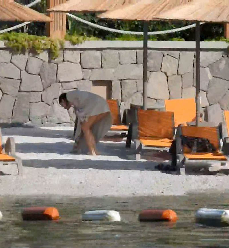 Oyuncu daha sonra denize girdi, yüzücü gözlüğünü takıp daldı. Ama su soğuk gelmiş olacak ki, 3-5 kulaç attıktan sonra çıktı. Hiç güneşlenmedi. Duş yapıp odasına döndü. Kenan Doğulu uyuduğu için eşine eşlik edemedi.