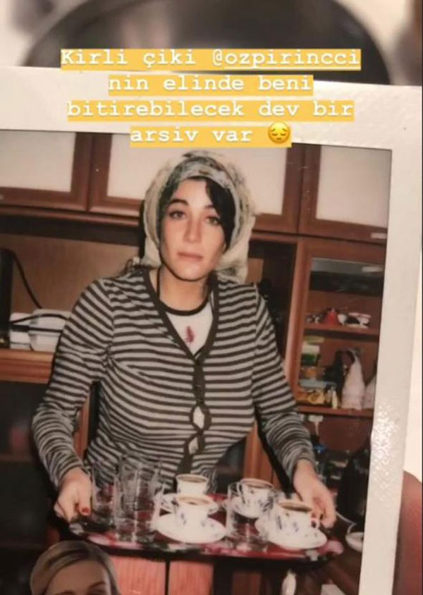 Berrak Tüzünataç, arkadaşlarına kahve ikram ederken çekilen eski bir fotoğrafına "Kirli çıkı Özge Özpirinçci'nin elinde beni bitirebilecek dev bir arşiv var" notunu düştü.