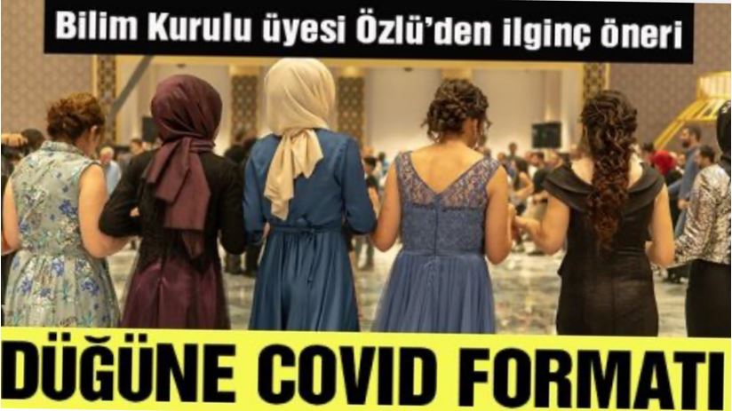 Eskisi gibi düğün yapmanın yakın zamanda mümkün gözükmediğini de belirten Prof. Dr. Tevfik Özlü, şunları söyledi: Bir yandan da düğünlerin yapılması lazım, hayat devam ediyor. Salgına izin vermeyecek yeni bir düğün formatı lazım. Açık havada yapılabilir. Oturma düzeni giriş çıkışlar ayarlanabilir. Takı merasimleri için yeni bir format geliştirilebilir.