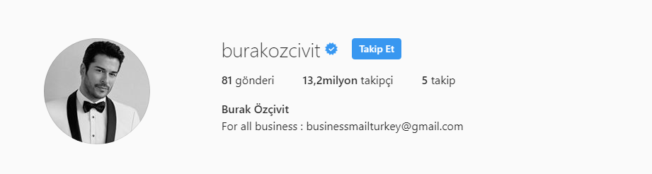 Ünlü oyuncu Burak Özçivit sosyal medya hesabı Instagram ile bütün oyuncuları geride bıraktı.