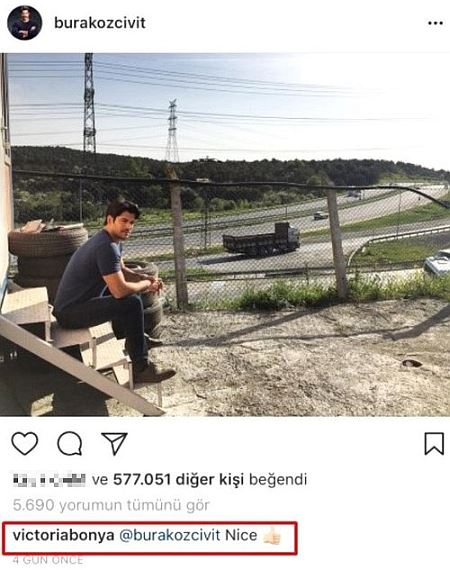 İRANLI MODEL MAHLAGHA JABERİ'DEN SONRA, BURAK ÖZÇİVİT'İN FOTOĞRAFINA BU DEFA DA RUS MODEL VİCTORİA BONYA YORUM YAPTI.