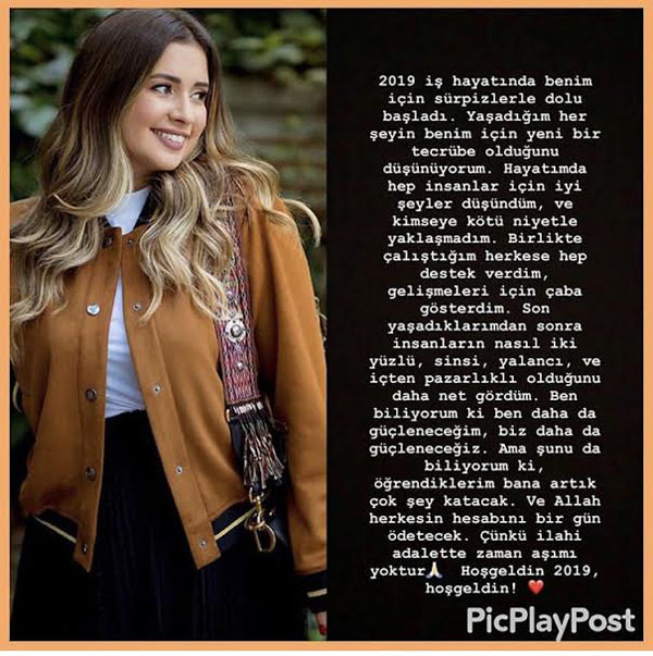 Son yaşadıklarımdan sonra insanların nasıl iki yüzlü, sinsi, yalancı ve içten pazarlıklı olduğunu daha net gördüm.” Bu sözler Buse Terim’in iş hayatında birisi ya da birileri tarafindan kalbinin kırıldığını düşündürdü bana... sözlerini şöyle tamamlayan Buse Terim 2019’a kötü başlamasına rağmen umutlu olduğunu da dile getirmekten geri durmadı. “ Biliyorum ki öğrendiklerim bana artık çok şey katacak ve Allah herkesin hesabını bir gün ödetecek. Hoşgeldin 2019 hoşgeldin “