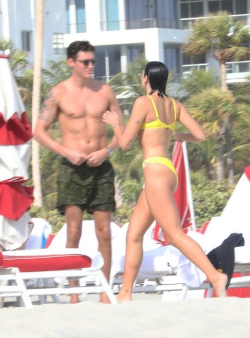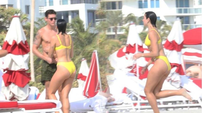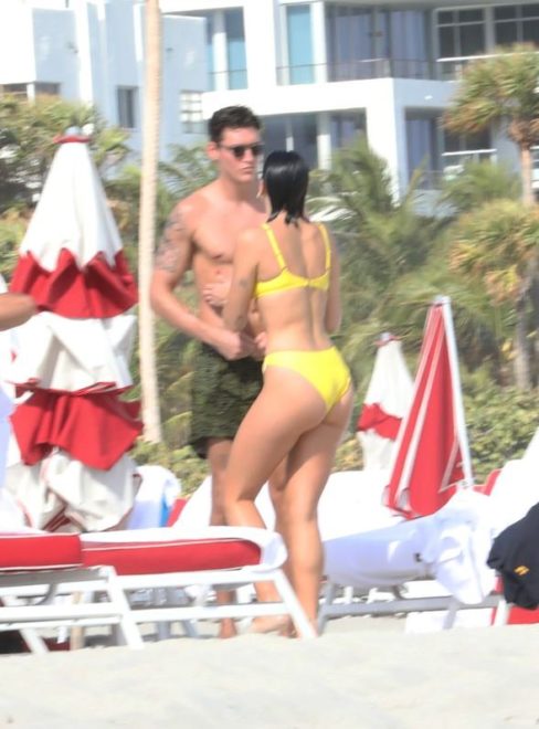 23 yaşındaki güzel şarkıcı, Miami sahillerinde dikkatleri üzerine çekti.