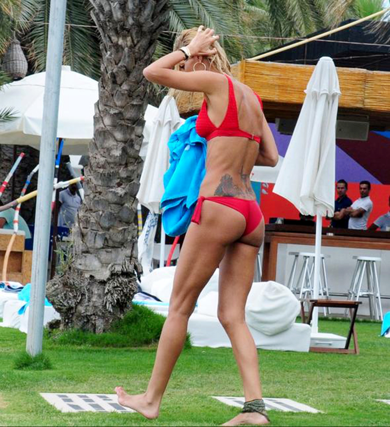 21 yıldır podyumlarda olan ve 40 yaşına merdiven dayayan Şıkel, zamana meydan okuyan fiziğiyle tüm tatilcilerin dikkatini çekti.