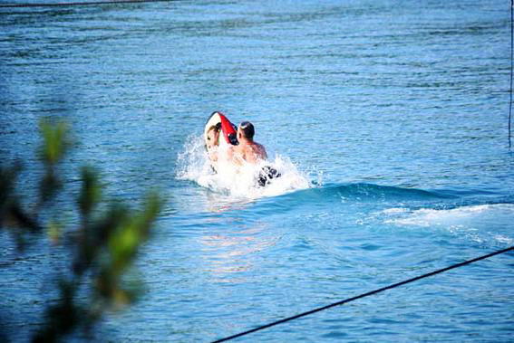 İlk olarak sunucu seabob’u kullanarak denizde keyifli zaman geçirdi. Ardından aracı alan komedyen, mavi sularda şov yaptı. Hız yapan ve dalarak birkaç metre suyun altından giden Yılmaz, “Aşkım senin için dalıyorum” diyerek hareketini tekrarladı.