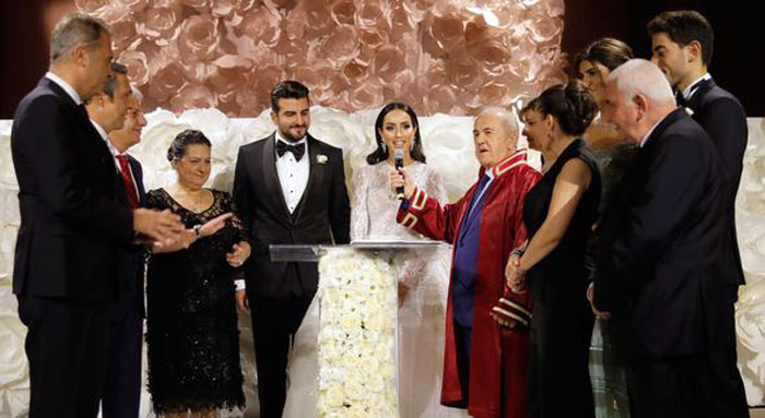 Lütfi-Mesude Öztanık'ın oğlu Cenk Öztanık, Cemil-Ayşe Kazancı'nın kızı Ecem Kazancı ile önceki akşam Zorlu Center'daki Raffles Hotel'de yapılan 900 kişilik düğünle evlendi