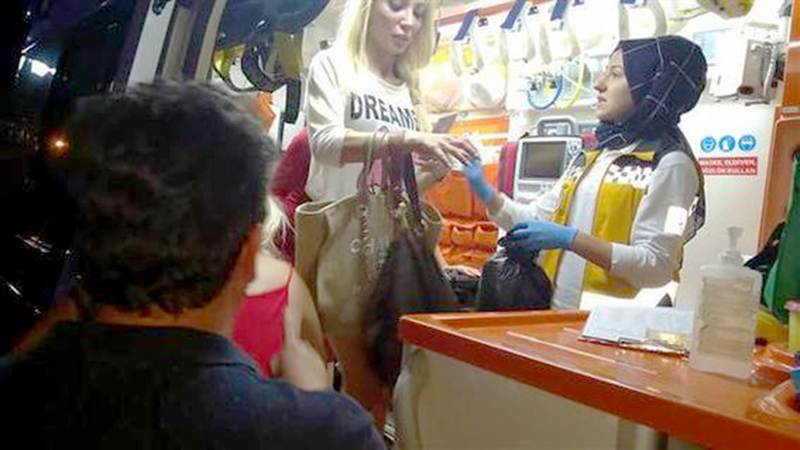 Polislerin uyarılarına rağmen iftira ve hakaretlerine devam eden Ceyda Ersoy, tedavi amaçlı dışarıda bulunan ambulansa götürülmek için bindikleri asansörde de hakaretlerine devam etti.