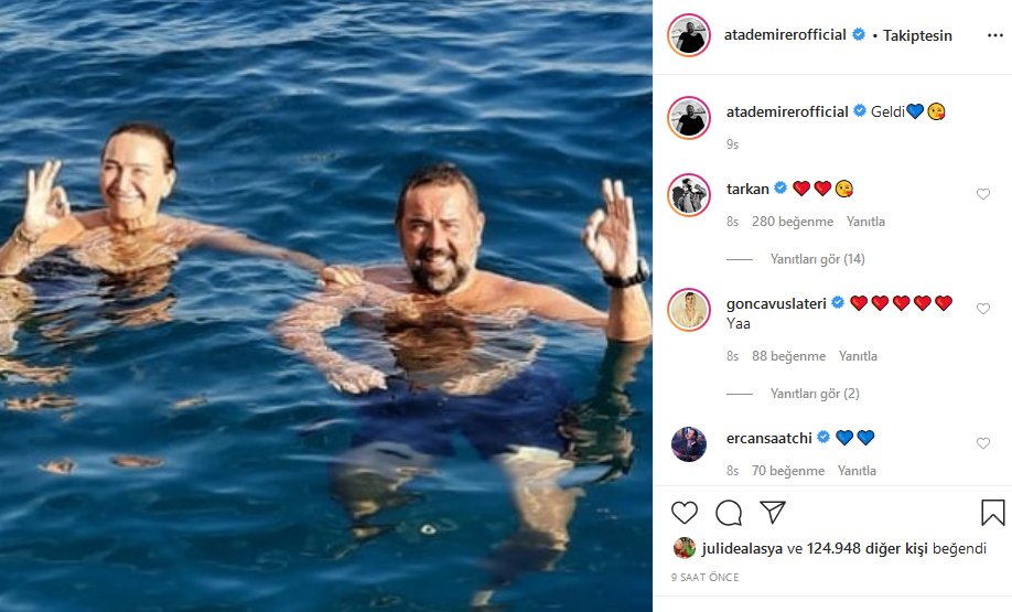 Demirer’in ‘Geldi’ notuyla paylaştığı kare aralarında Tarkan’ın da olduğu çok sayıda ünlü ismin beğenisini aldı.