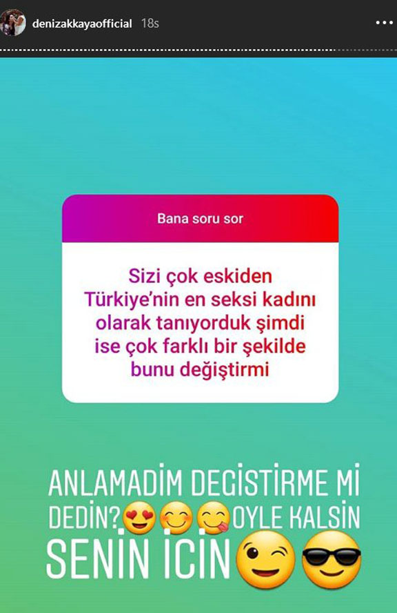 Eski model Deniz Akkaya, instagram hesabı üzerinden takipçilerinin sorularına yanıt verdi ve kendisi hakkında merak edilenlere açıklık getirdi.