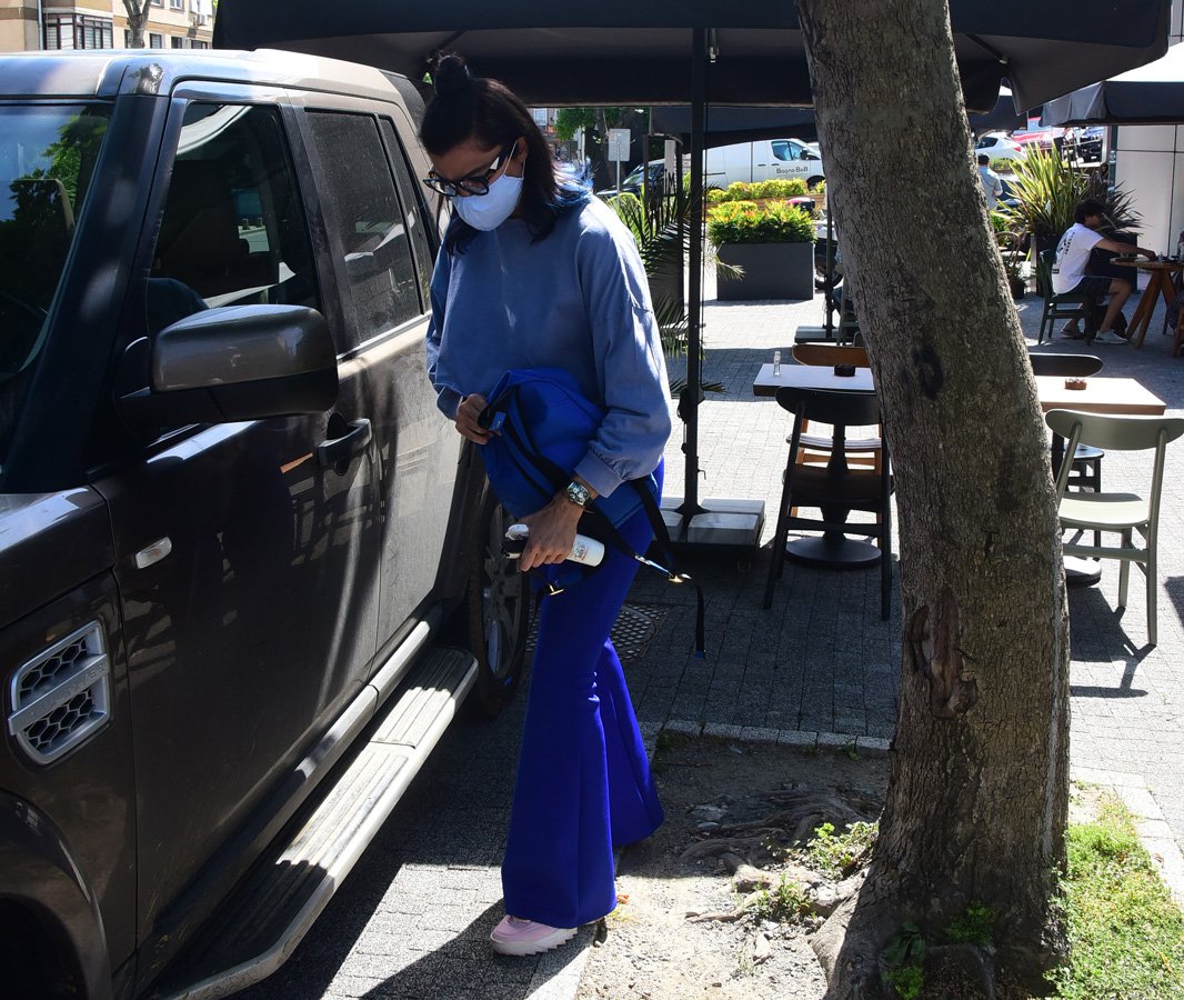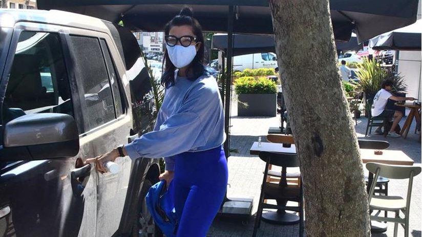 Deniz Akkaya, Etiler'de aracına binerken görüntülendi. Tedbiri elden bırakmayan Akkaya'nın elindeki dezenfektan dikkat çekti.