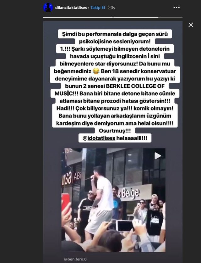 İdo Tatlıses’in Ben Fero’nun “Biladerim için” şarkısını söylemesiyle dalga geçenlere kardeşi Dilan Çıtak ateş püskürdü.