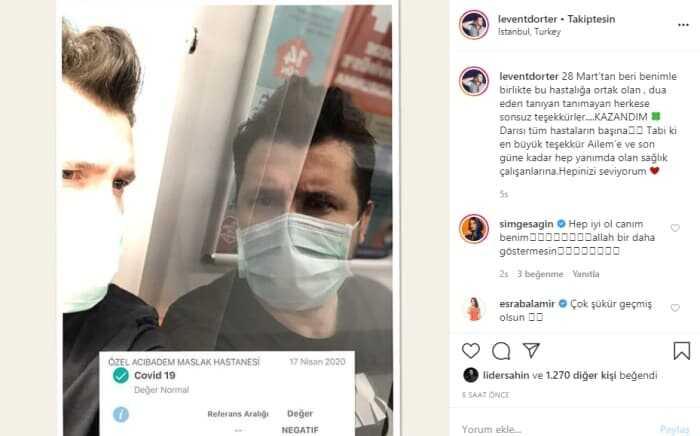 Dörter, "28 Mart’tan beri benimle birlikte bu hastalığa ortak olan, dua eden tanıyan tanımayan herkese sonsuz teşekkürler....KAZANDIM! Darısı tüm hastaların başına. Tabii ki en büyük teşekkür Ailem’e ve son güne kadar hep yanımda olan sağlık çalışanlarına. Hepinizi seviyorum" diyerek müjdeyi patlattı.