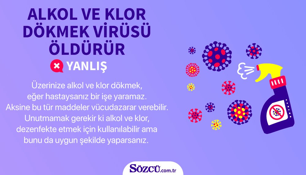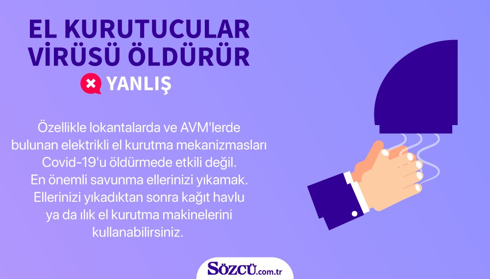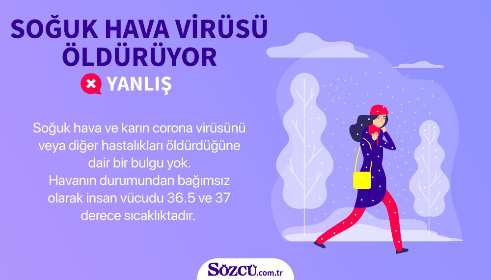 Sözcü'den Yiğit Can Kaytmaz'ın haberine göre; Bunlar arasında soğuğun virüsü kırdığı, sıcak bir duş almanın iyileştirdiği ve el kurutma makinelerinin corona virüsünü öldürdüğüne dair iddialar sosyal medyada sıklıkla paylaşılıyor. Dünya Sağlık Örgütü ise bu iddiaları bilimin ışığında mercek altına alarak kamuoyunu bilgilendirdi ve çok paylaşılan "efsaneleri" bir bir çürüttü.