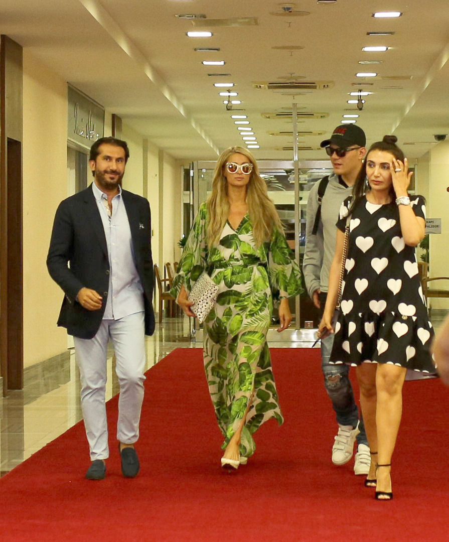 Üzerinde yeşil renkli derin yırtmaçlı elbisesi ile dikkati çeken Hilton, çerçevesi parlak taşlarla süslü güneş gözlüğü taktı. Hilton, gazetecileri, "Harika bir şehre geldim. Sizlerle yarın görüşmek üzere" diye selamladı. Hilton, gazetecilere konuşurken nişanlısı aracın yanında bekledi.
