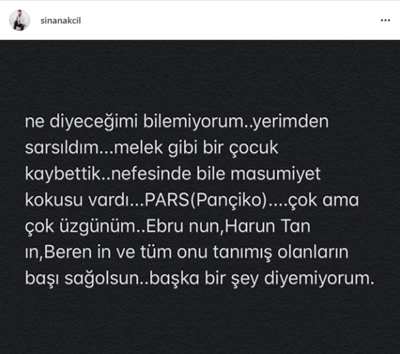 Ne diyeceğimi bilemiyorum...Yerimden sarsıldım...Melek gibi bir çocuk kaybettik... Nefesinde bile masumiyet kokusu vardı... PARS(Pançiko)....Çok ama çok üzgünüm... Ebru'nun,Harun Tan'ın, Beren'in ve tüm onu tanımış olanların başı sağ olsun... Başka bir şey diyemiyorum.