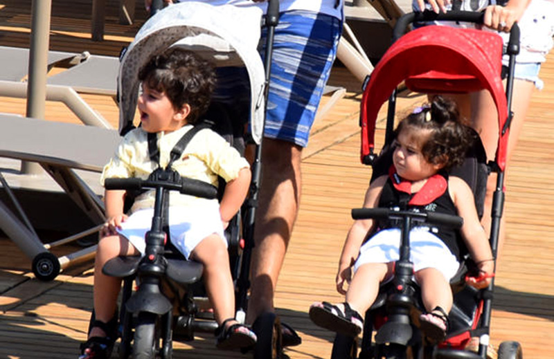 Çift, önceki gün Kuum Beach’te ikiz çocukları Ebrusu ve Hasan Poyraz’ı gezdirirken objektife takıldı.