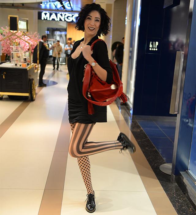 Ece Gürsel, desenli renkli çorapları ve saç modeliyle de ilgi odağı oldu.