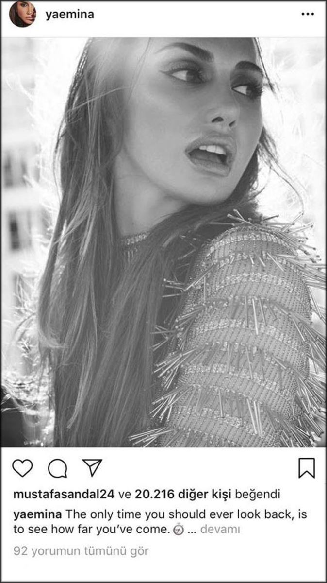 Geçen hafta eski eşiyle çıktıkları tekne turunda tartıştıkları iddia edilen Emina Jahovic, Instagram hesabından paylaştığı fotoğrafının altına ''Sadece ne kadar yol kat ettiğini görmek için geriye bakmalısın'' notunu düştü.