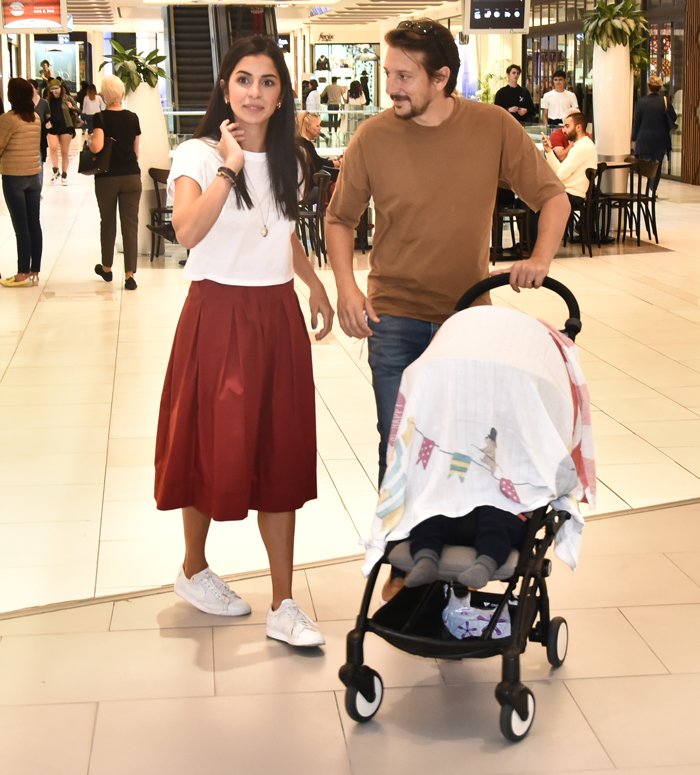 Oyuncu Engin Hepileri, eşi Beyza Şekerci ve oğlu Can ile Akmerkez'deydi.