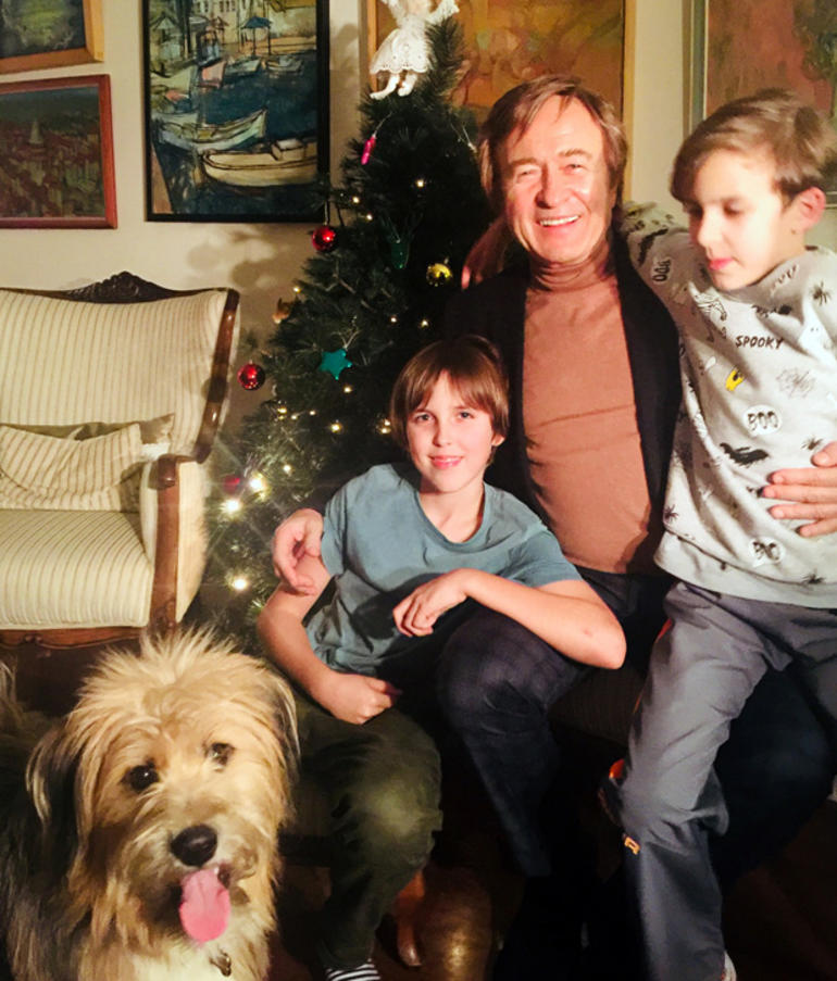 Ünlü sanatçı, yemek sonrası torunları Erol, Ozan ve geçen yıl barınaktan sahiplendikleri Lucky adlı köpekleriyle hatıra fotoğrafı çektirdi.