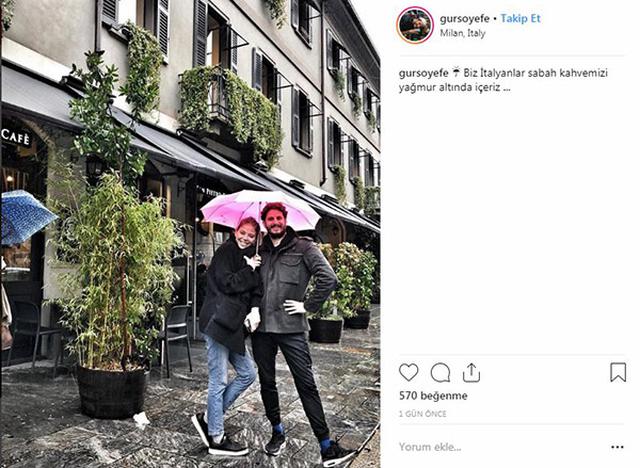 İkili, çektirdikleri fotoğrafları Instagram'da paylaştı. Efe Gürsoy, paylaştığı fotoğrafa, "Biz İtalyanlar sabah kahvemizi yağmur altında içeriz" notunu yazdı.