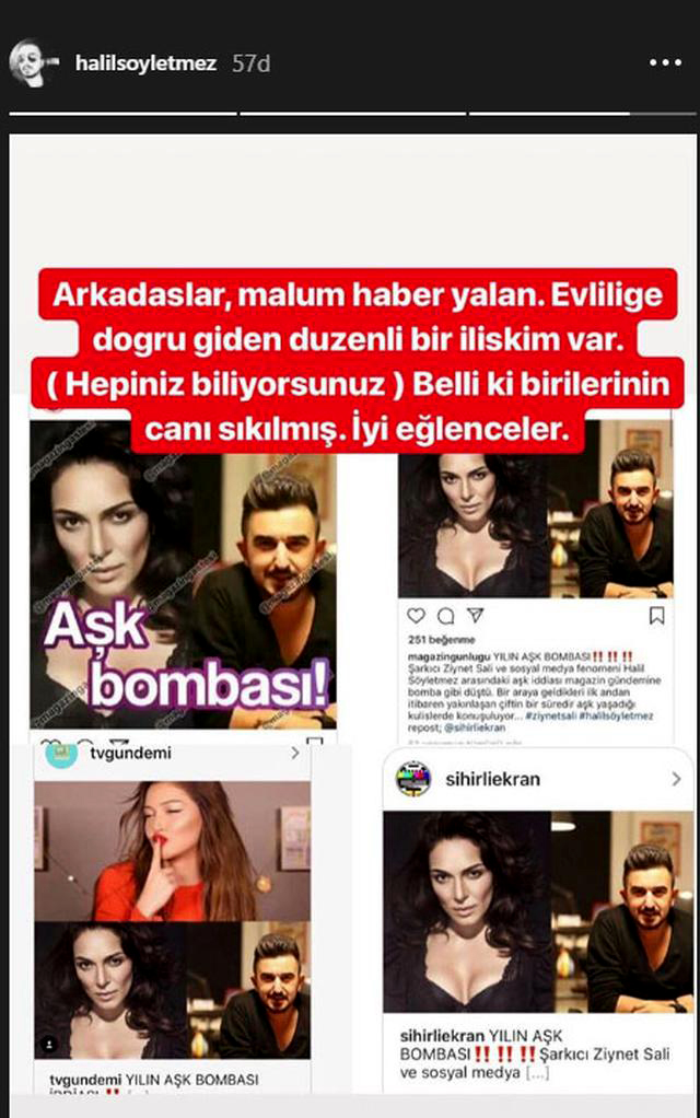Aşk dedikodusu sosyal medyaya bomba gibi düşerken Halil Söyletmez Instagram hesabından haberleri yalanladı.