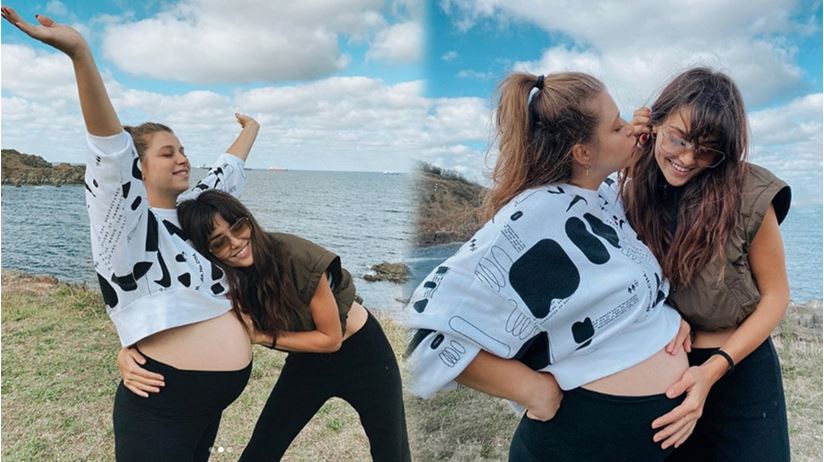 Azize dizisiyle dikkatleri üzerine çeken oyuncu Hande Erçel, hamile ablası Gamze Erçel ile objektiflere poz verdi. İkilinin bu pozları sosyal medyada yankı buldu.
