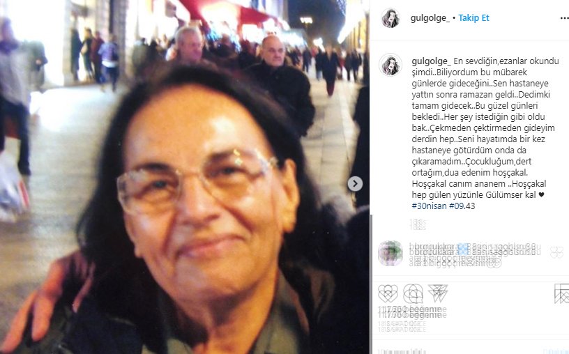 Gölge, Instagram hesabından anneannesinin fotoğrafını paylaşarak, ” En sevdiğin,ezanlar okundu şimdi..Biliyordum bu mübarek günlerde gideceğini..