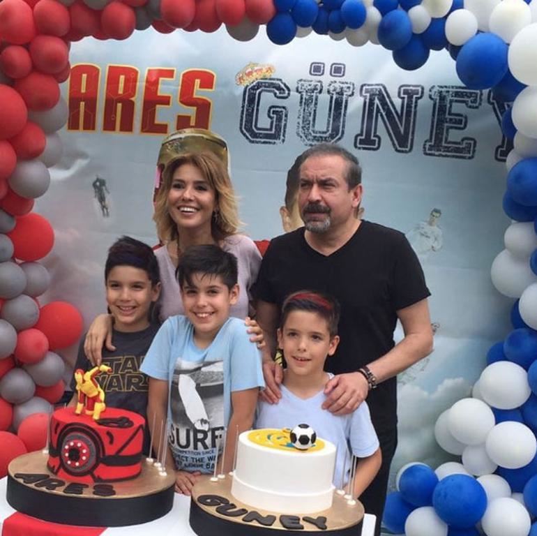 Gülben Ergen ve Mustafa Erdoğan, ikiz oğulları Ares ve Güney’in doğum günü için bir araya geldi.