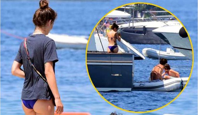 Ünlü oyuncu, bir botla tekneye geçerken görüntülendi.